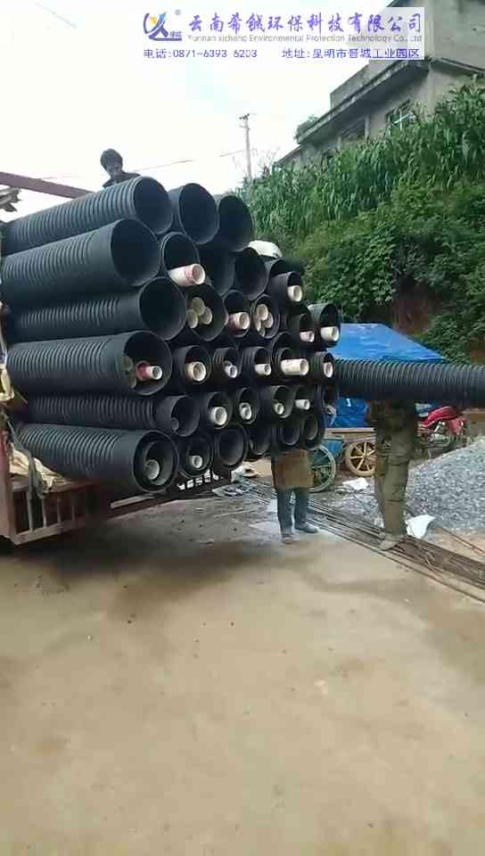 采用規格:HDPE雙壁波紋管、塑料檢查井、七孔通信管、PE給水管客戶工地位置:曲靖云南